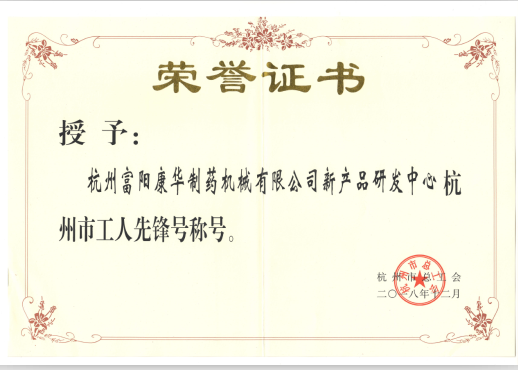 我公司新產(chǎn)品研發(fā)中心被評(píng)為2018年度杭州市“工人先鋒號(hào)”。