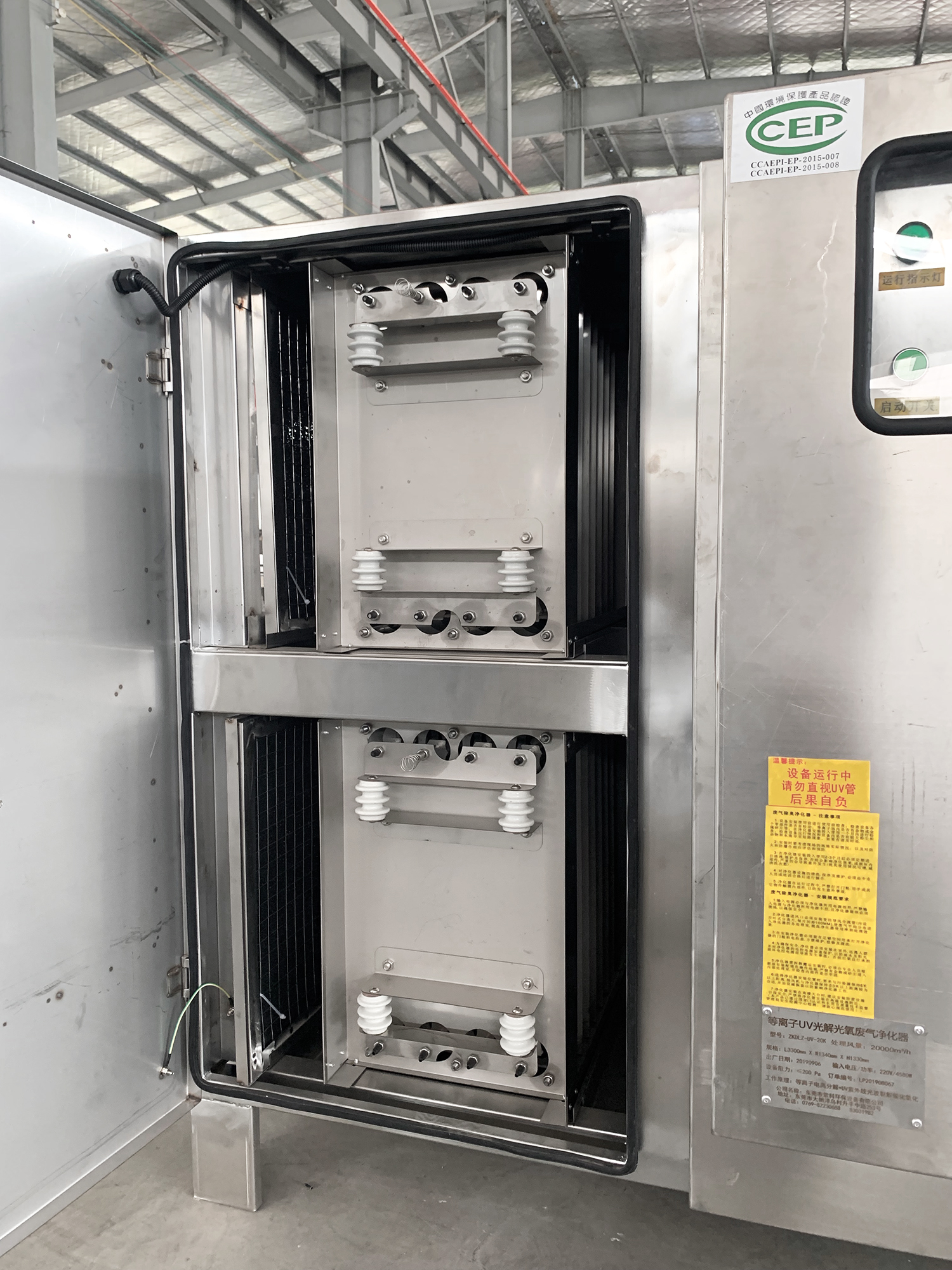 工作原理:在光解區(qū),利用特制的高能高臭氧UV紫外線光束照射異味氣體,經(jīng)多級凈化后徹底達(dá)到脫臭及殺滅細(xì)菌的目的;在分解區(qū),低溫等離子體降解污染物是利用這些高能電子、自由基等活性粒子和廢氣中的污染物作用,使污染物分子在極短的時間內(nèi)發(fā)生分解,并發(fā)生后續(xù)的各種反應(yīng)以達(dá)到降解污染物的目的。最終達(dá)到排放標(biāo)準(zhǔn)。